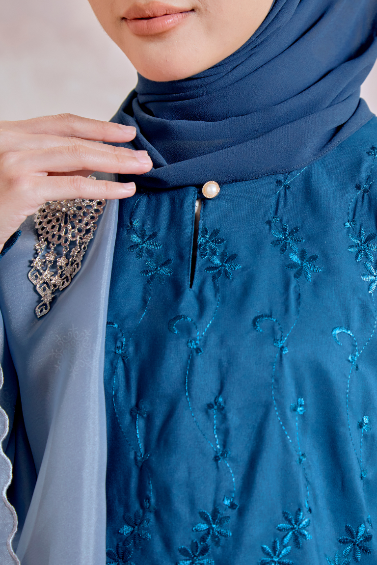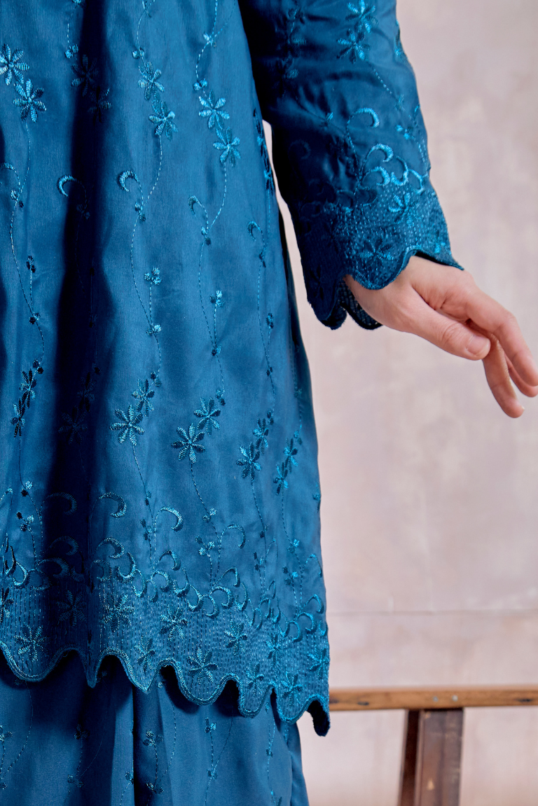 Kurung Pahang Modern Camila In Teal Blue